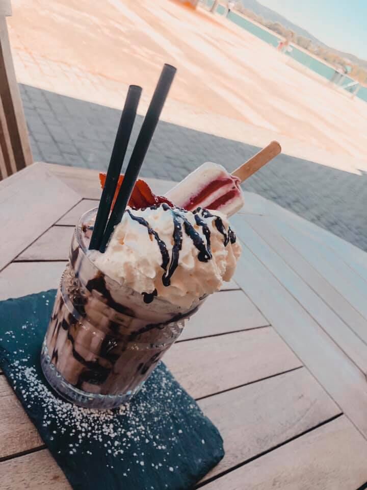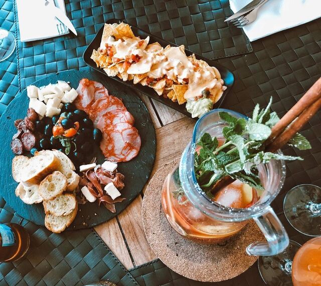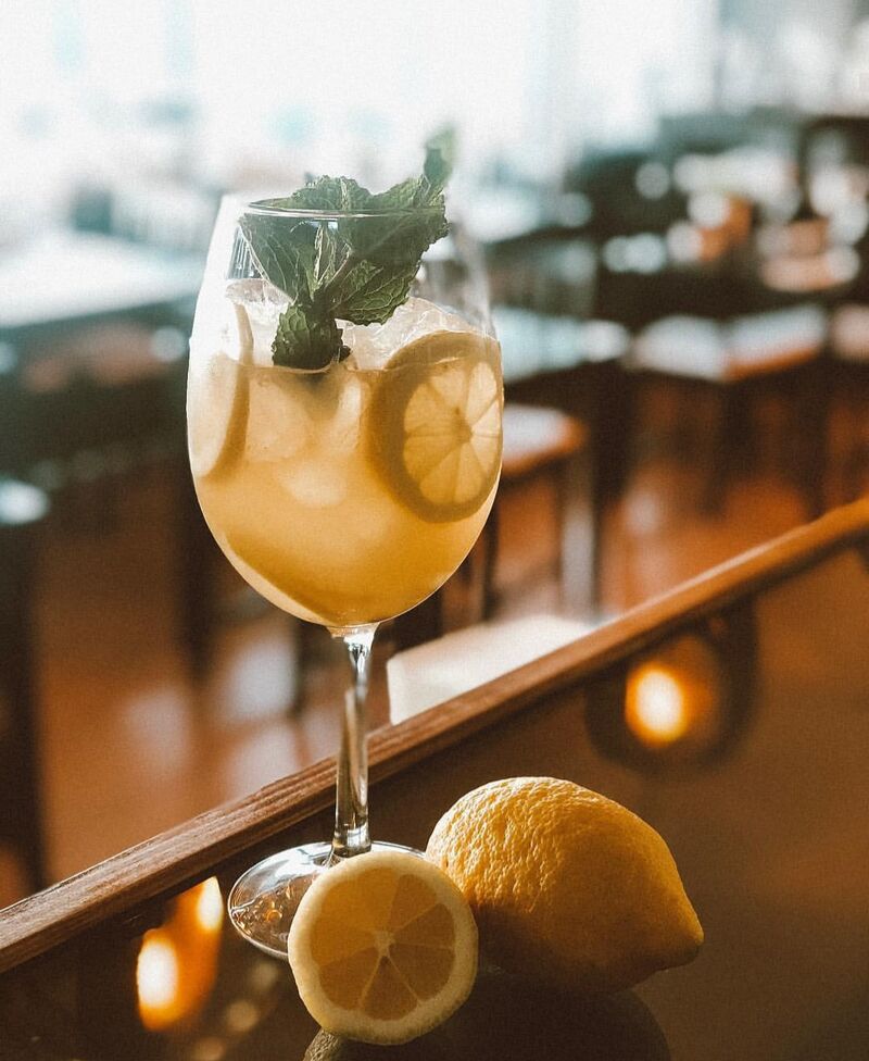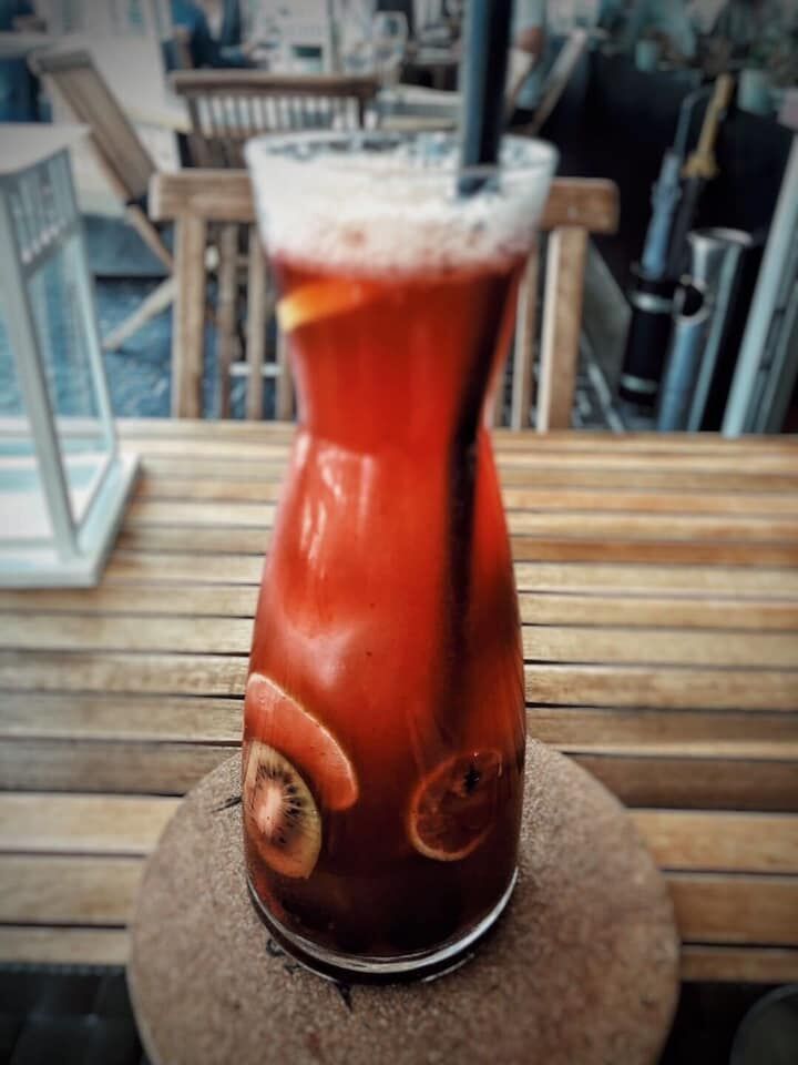 Uma das nossas criações é a sangria de Inverno, uma infusão quente de vinho branco com outras bebidas.